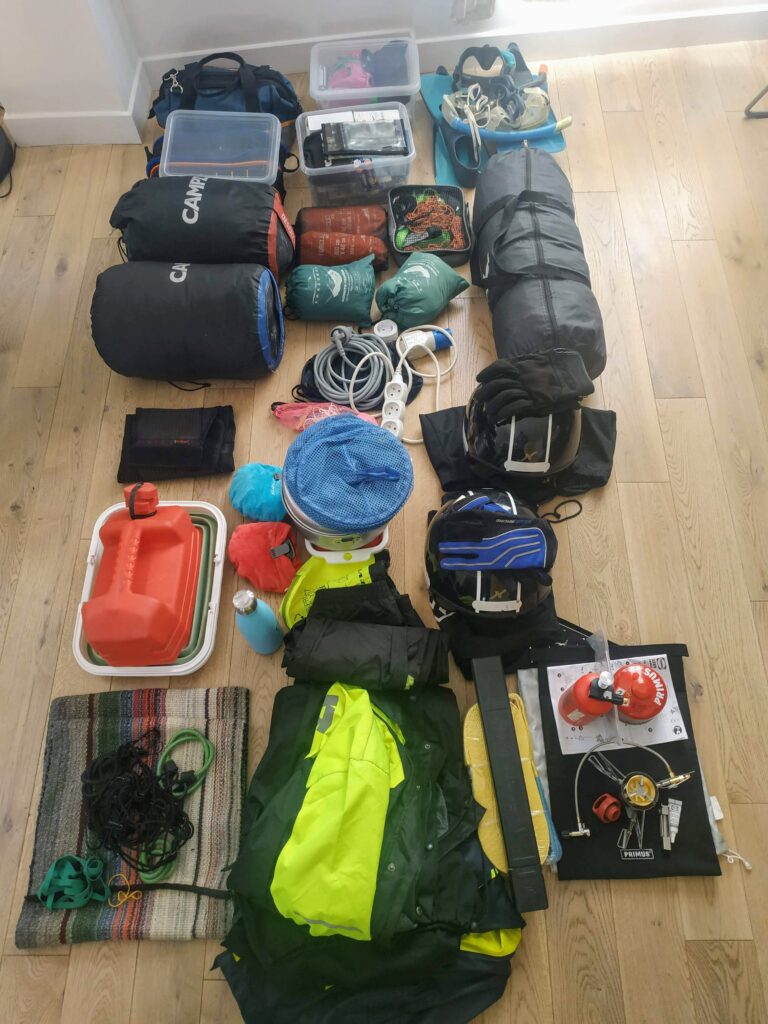 On a renoncé à emporter la sangle de remorquage jaune, histoire de pas se porter la poisse (à moins qu’il ne faille faire le contraire ?), ainsi que la rallonge électrique (le bloc prise suffira). MINIMUM on a dit. Bon, j’ai tout de même ajouté le cerf volant, de type mini parapente, il est tellement léger !