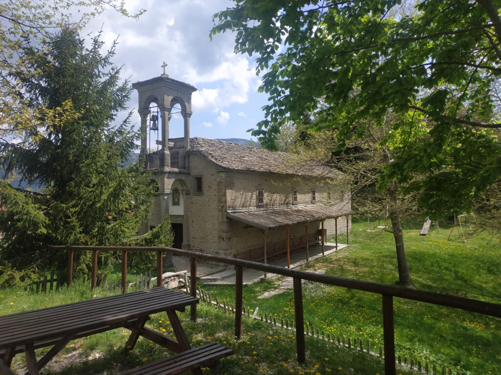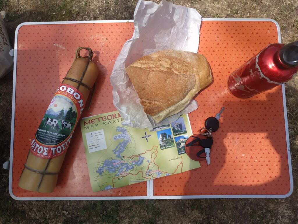 Nous sortons peu avant Metsovo, village connu pour sa spécialité de fromage fumé. On a un peu l’impression de conduire dans les hauteurs de Chamonix, mais en Grèce. Étonnant comme tout le paysage et sa végétation ici disent la montagne, et comme pourtant dans ce village à 1100 mètres règne une ambiance très méditerranéenne.