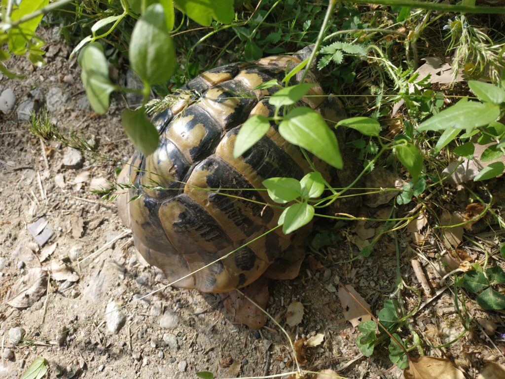En chemin, de retour au camping, nous faisons une rencontre ! Une belle tortue qui ressemble fort à la nôtre !