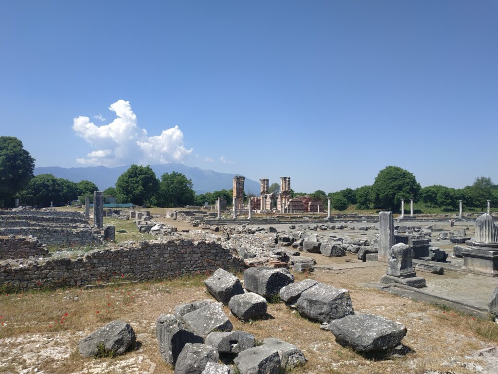Ticket pris, on parcours les vestiges de cette cité fortifiée, au pied d’une acropole située sur l’ancienne route reliant l’Europe à l’Asie, la Via Egnatia. Elle a été édifiée en 356 av. J-C. par le roi macédonien Philippe II, la ville s’est ensuite développée comme une « petite Rome », avec l’Empire romain.