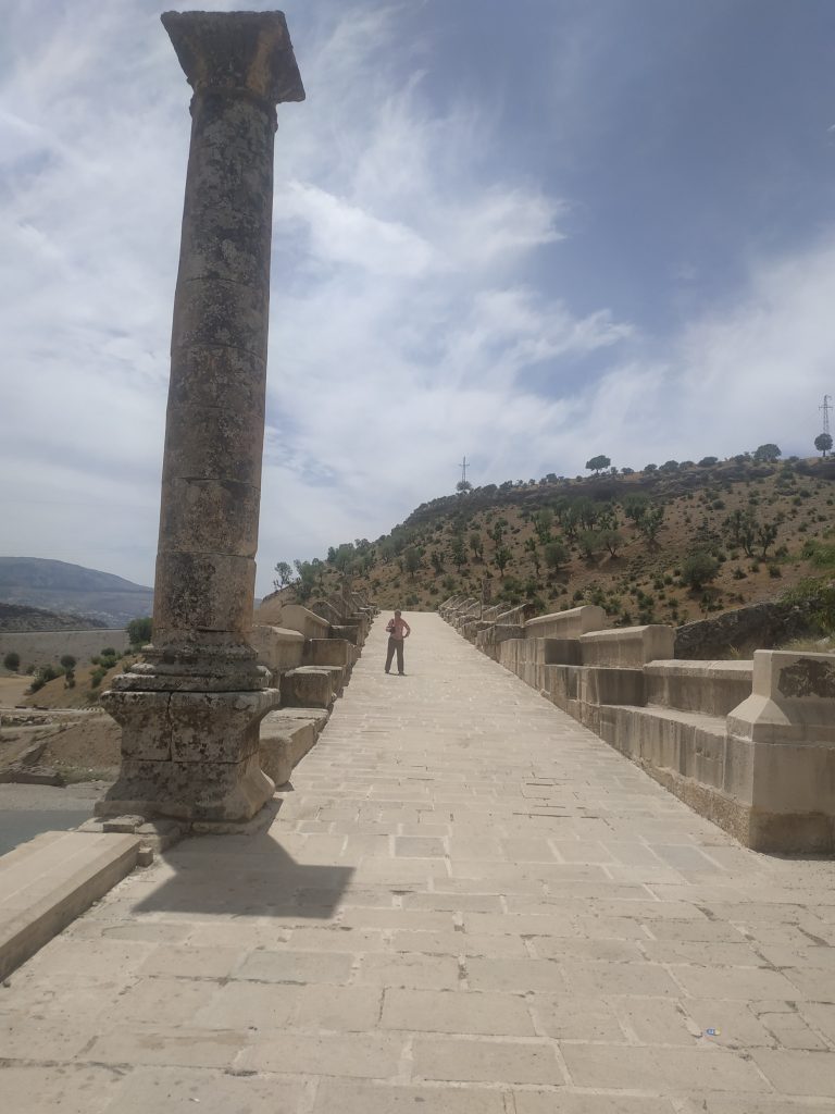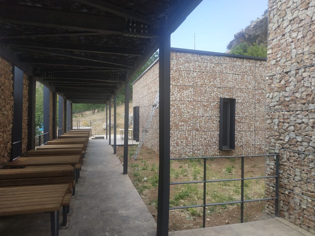 Juste avant les colonnes du pont, une construction récente, vraisemblablement un lieu de résidence d’été pour les gens de passage. C’est encore en chantier mais on me laisse prendre quelques photos.