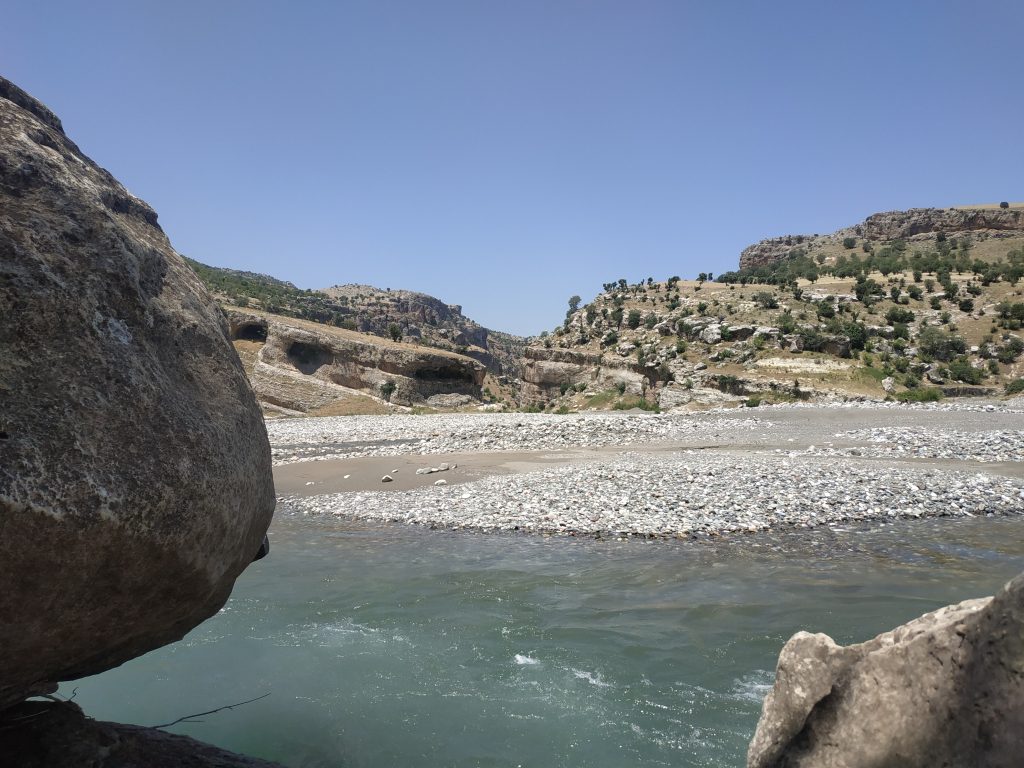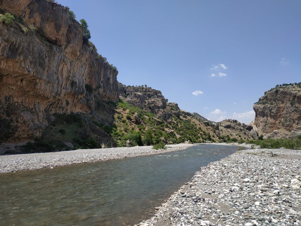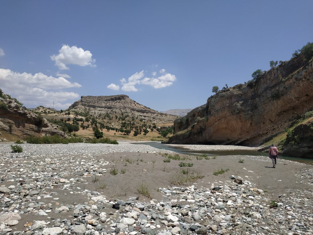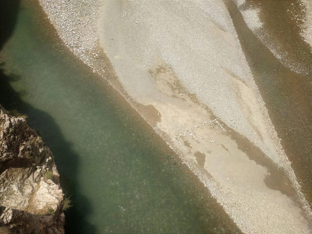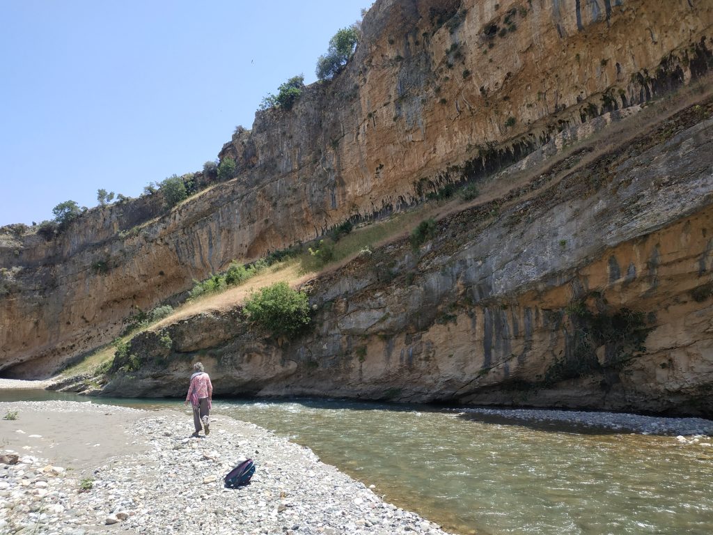 Nous avons cherché un moment le meilleur moyen d’accéder au lit de la rivière, en évitant les à pics du canyon, nous avons dû revenir en amont du pont.