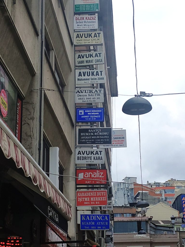 L’urbanisme n’est pas le point fort des villes Turques en général, ici c’est un cas d’école. Une 4 voies traverse la ville au plus près de la mer, privant ses habitants de l’accès à plus des deux tiers de la côte… Générant de plus beaucoup de bruit et de pollution. C’est semble-t-il le cas sur toute la longueur de la côte de la mer Noire, nous le saurons bientôt. Mais d’autres routes d’accès partent ça et là, dans la pente et à flanc de montagne, perturbant encore les flux de circulation, entre piliers de ponts, bretelles, rampes, le piéton, les chats et les chiens y ont la vie dure ! Et les PMR la vie impossible.