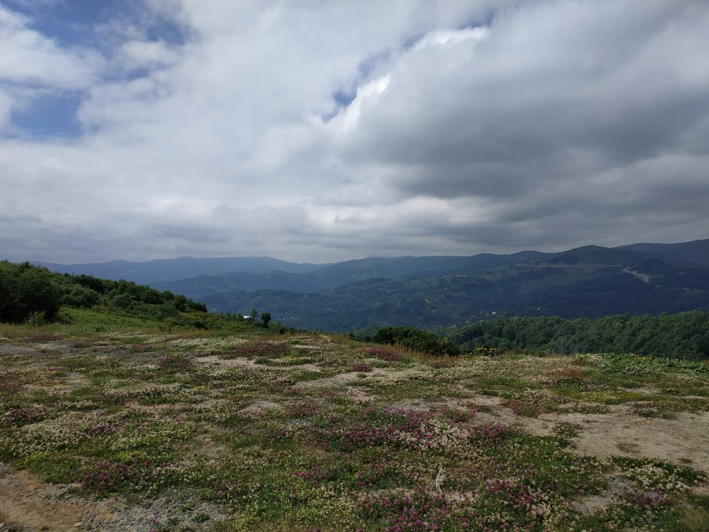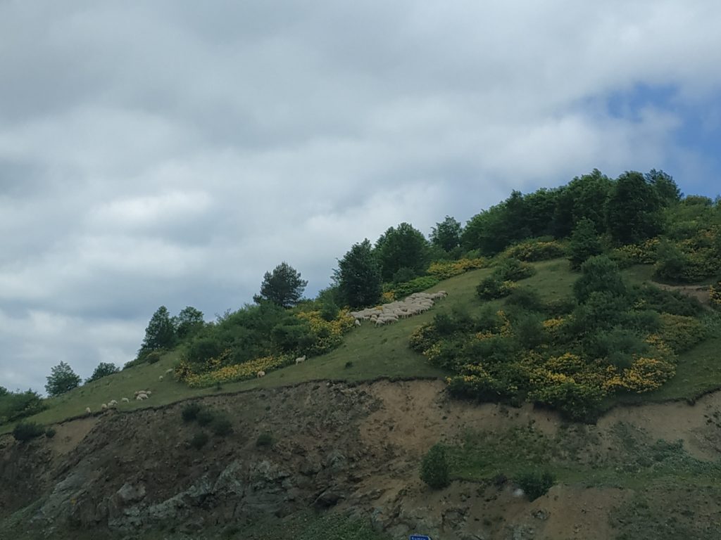 On grimpe très vite à 1500 mètres d’altitude, traversant des cultures de noisetiers, beaucoup de troupeaux de vaches, remplacées peu à peu par des moutons une fois sur un plateau aux airs de Jura du côté de la forêt de Joux.