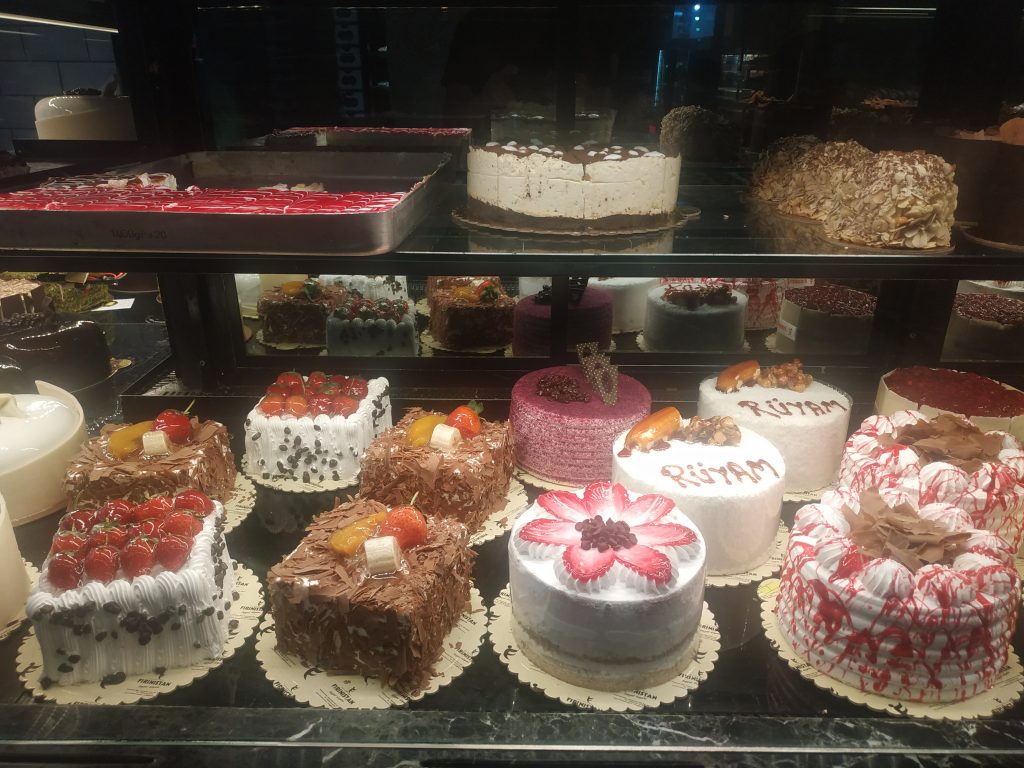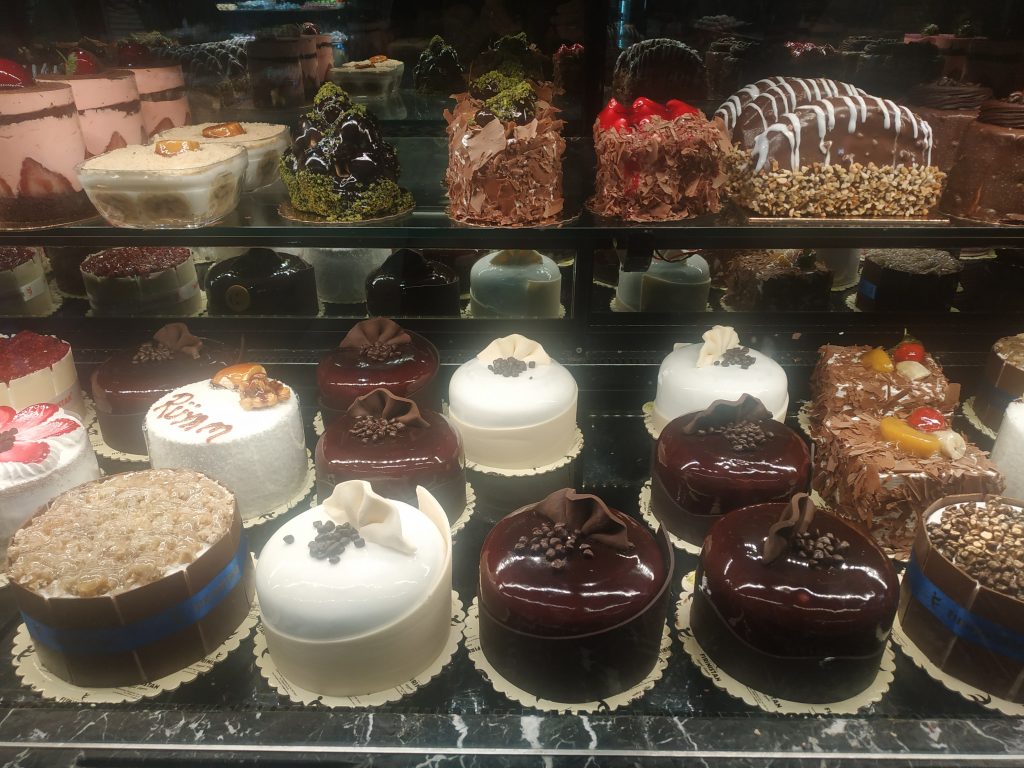 En chemin on cherche à se donner du courage et on a envie de sucre… Mais on se dirige vers de petits gâteaux au miel de taille beaucoup plus modeste que ceux de la vitrine…