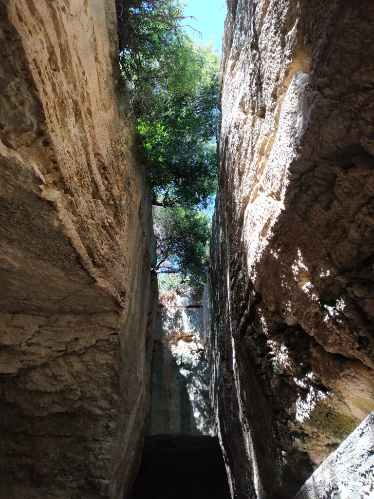 Après un petit quart d’heure, le sentier s’enfonce tout à coup dans la roche…