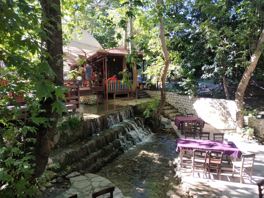 On arrive peu après dans la petite ville côtière de Çevlik. On la traverse en direction du sud et s’enfonce à l’est dans les reliefs abritant des cultures de maïs et aubergines. On laisse la voiture pour continuer à pieds.