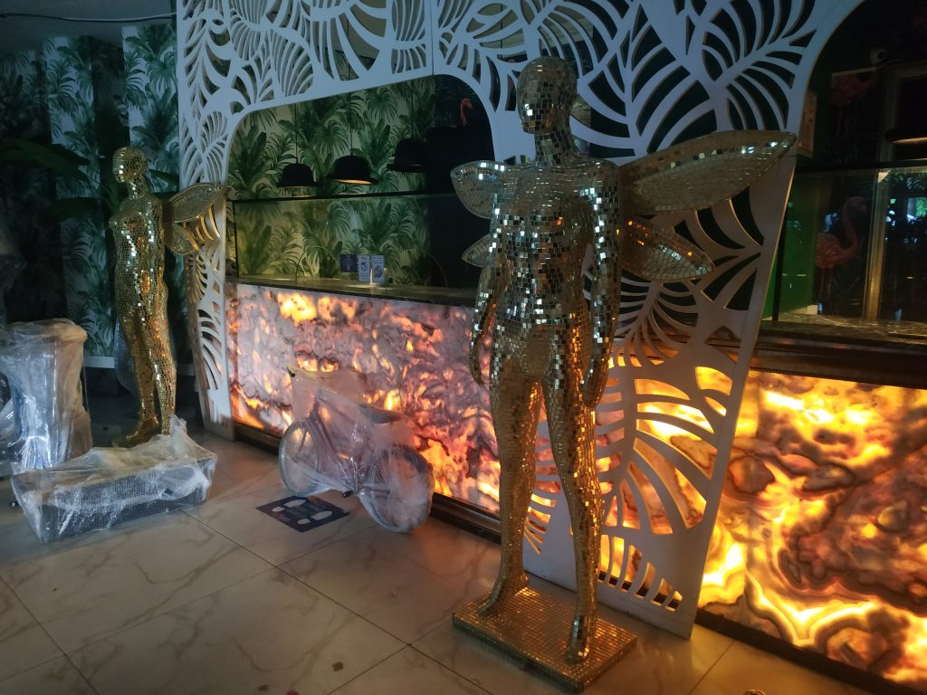 Il a tenu à nous accompagner avec son scooter sur le chemin de l’hôtel réservé par l’assurance. Nous arrivons après 10 kms devant un hôtel façon gâteau à la crème, goût Russe, couleurs criardes et déco clinquante.