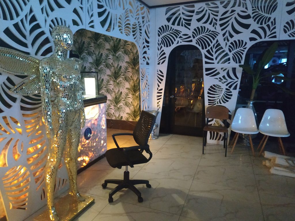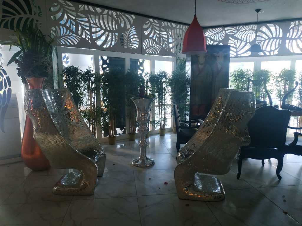 La piscine est vide, les feuilles mortes s’amoncellent dans le hall. Tout le mobilier est emballé, visiblement prêt à être déménagé. Les 3 guichets de la réception sont allumés mais personne n’est là. Personne ne répond à nos cris de « Reseptiyon ?! ». C’est sûr cet hôtel est fermé…