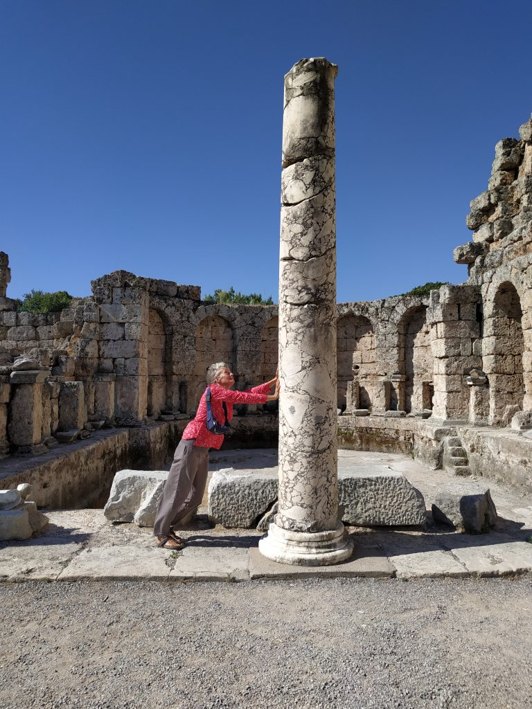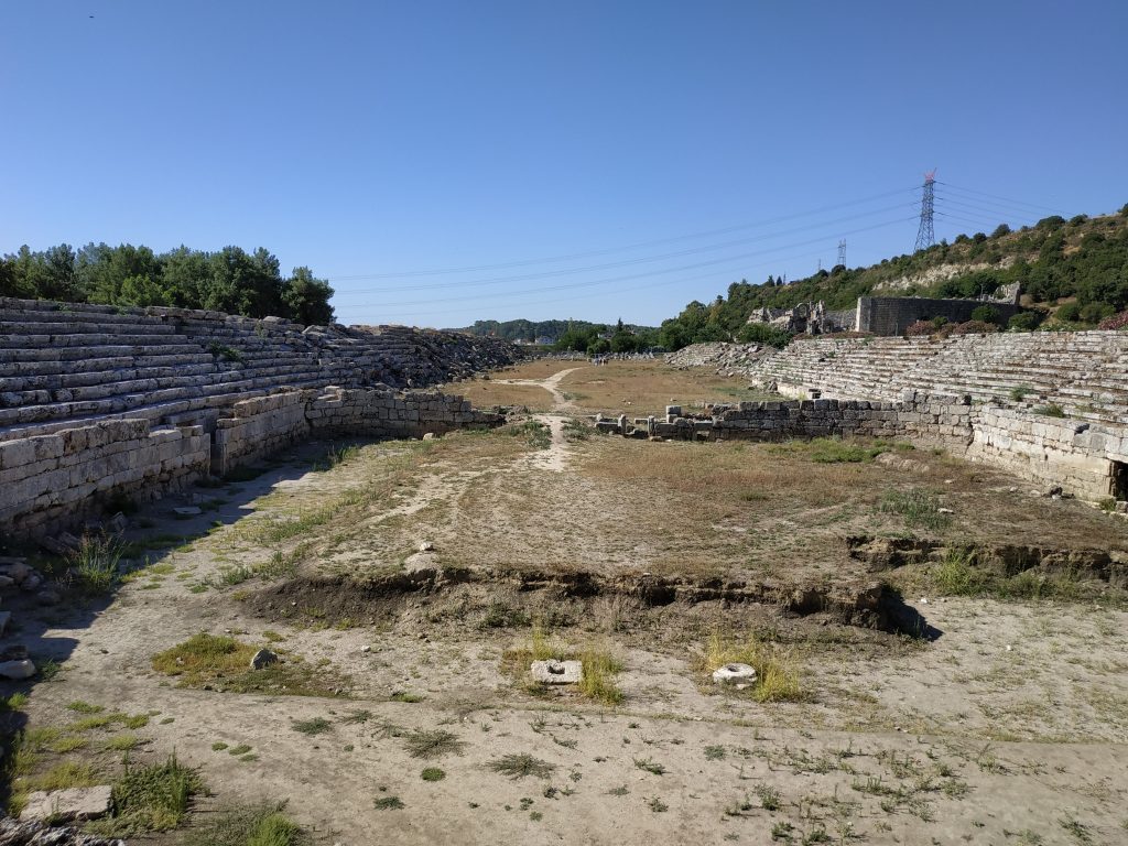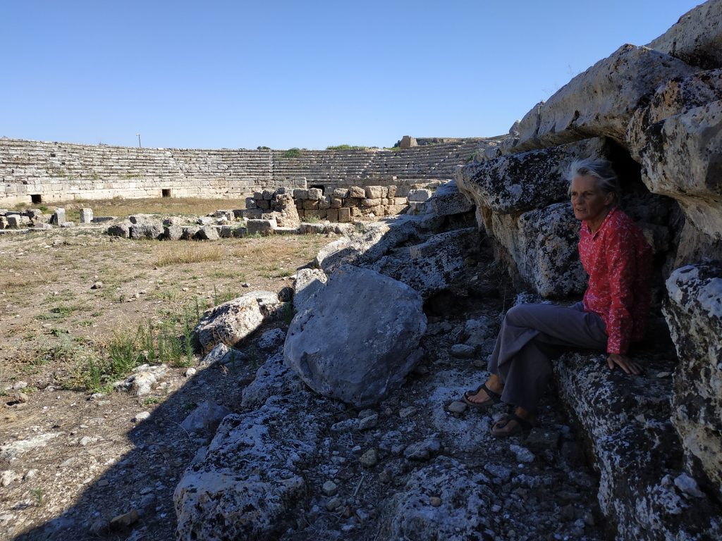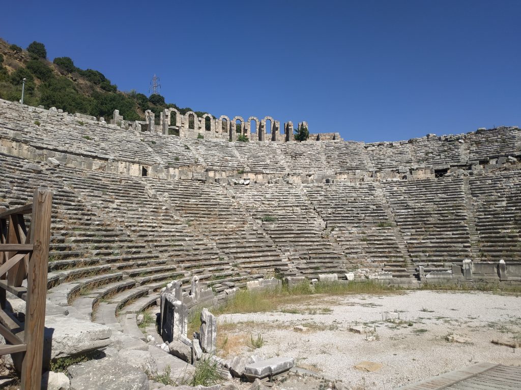 Et enfin le théâtre, qui sans égaler celui d’Aspendos qui est extrêmement bien conservé, a une aura particulière, comme chacun des théâtres que nous avons vu en Turquie. Le théâtre et son architecture bien sûr, mais le lieu, apporte à chacun son supplément d’âme. Ici c’est une colline, qui semble accueillir et soutenir le théâtre côté gradins.