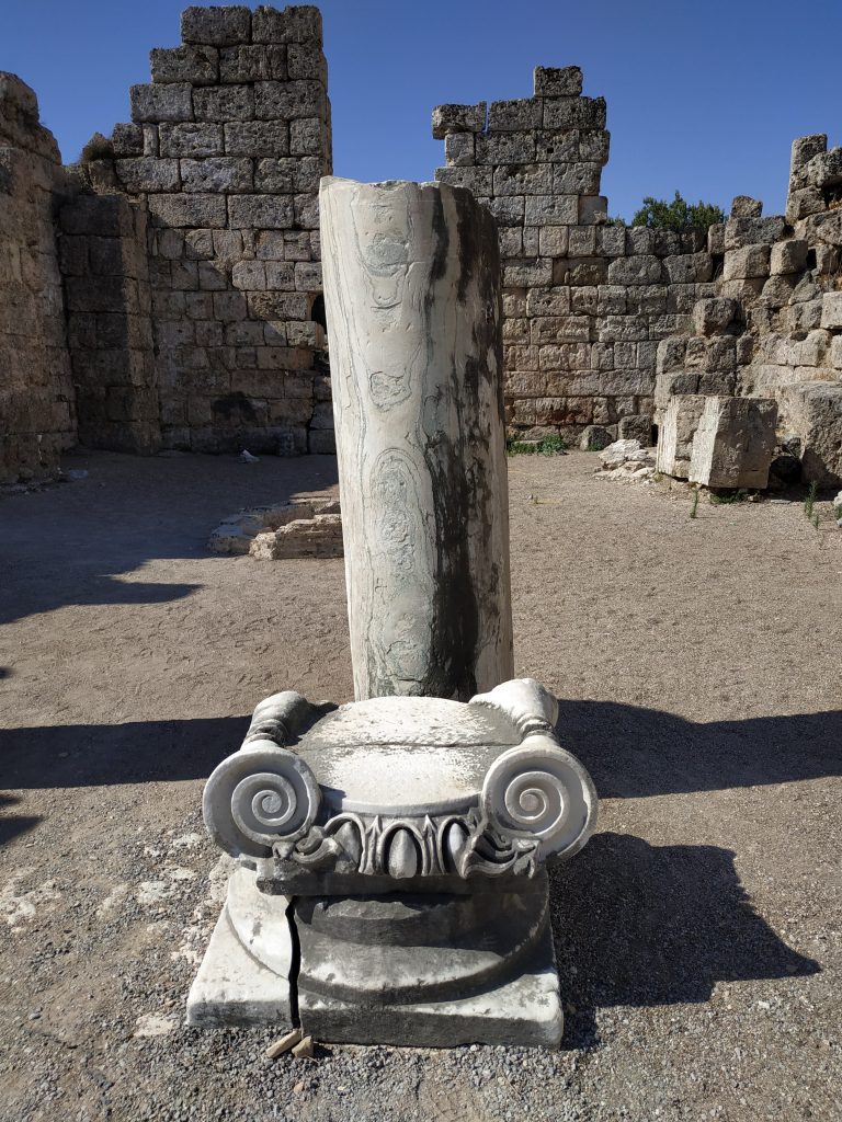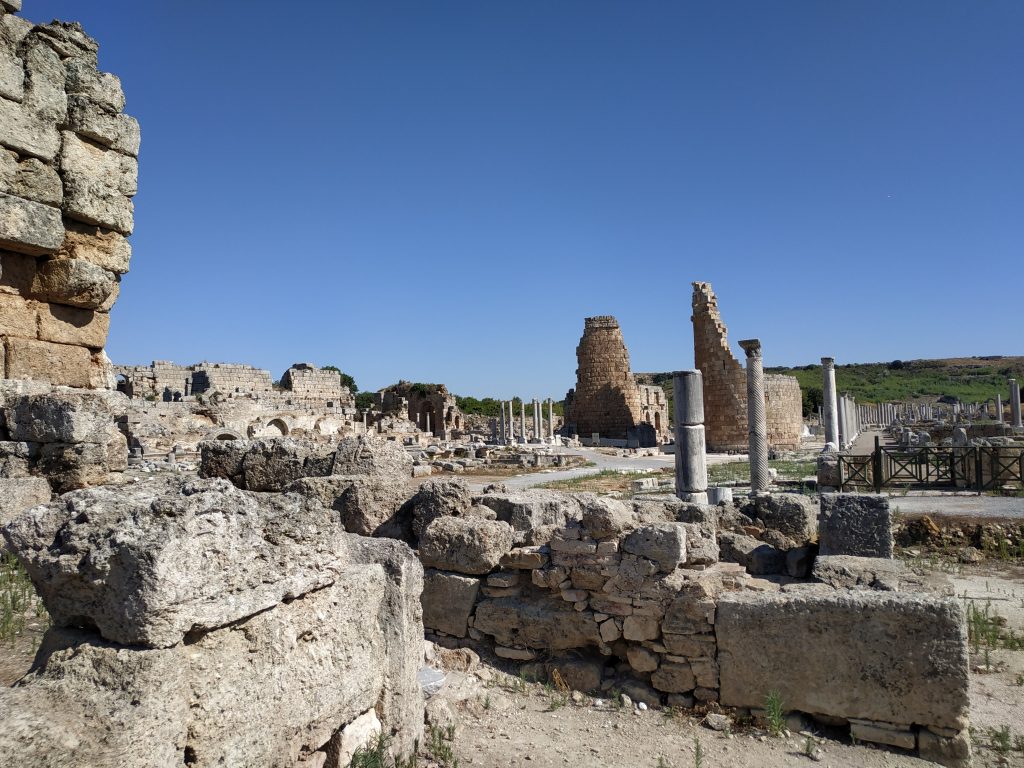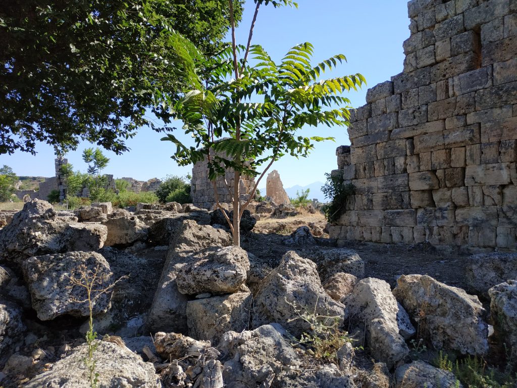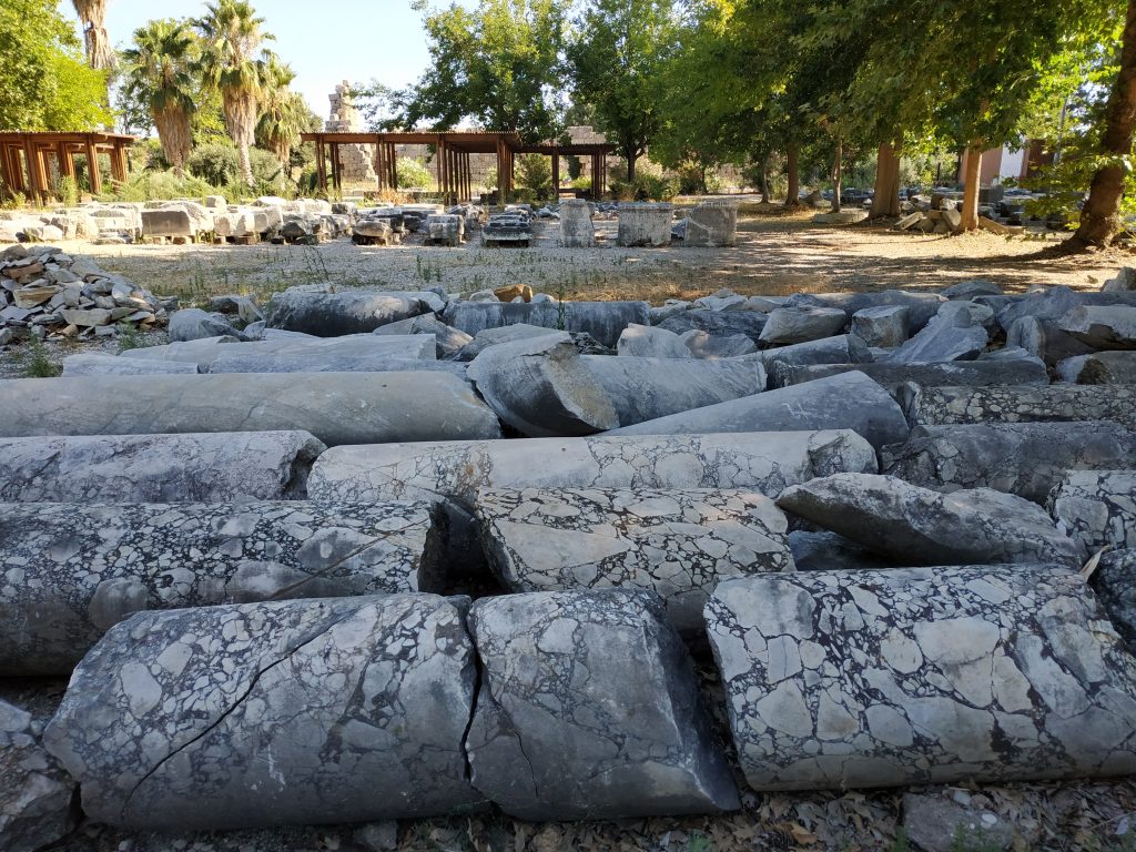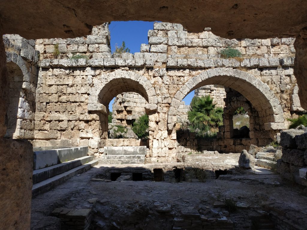 Et enfin le théâtre, qui sans égaler celui d’Aspendos qui est extrêmement bien conservé, a une aura particulière, comme chacun des théâtres que nous avons vu en Turquie. Le théâtre et son architecture bien sûr, mais le lieu, apporte à chacun son supplément d’âme. Ici c’est une colline, qui semble accueillir et soutenir le théâtre côté gradins.