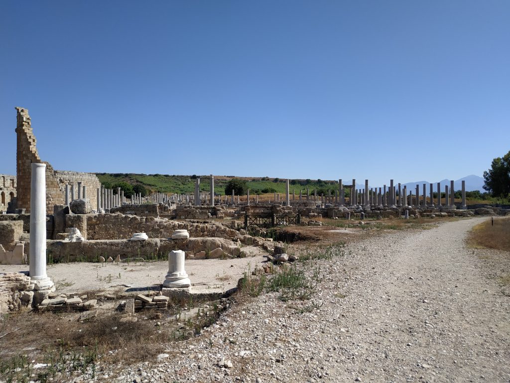 Aujourd’hui nous avons quitté le petit camping de Sidé tôt ce matin, direction Pergé, site Gréco Romain à 60 kms à l’ouest, avant de poursuivre notre route environ 50 kms encore jusqu’au point de rendez vous avec Raphaël et Marie Christine. Nous avons prévu un bivouac au bord du canyon au dessus d’Antalya, mais voici déjà le récit de notre visite de Pergé.