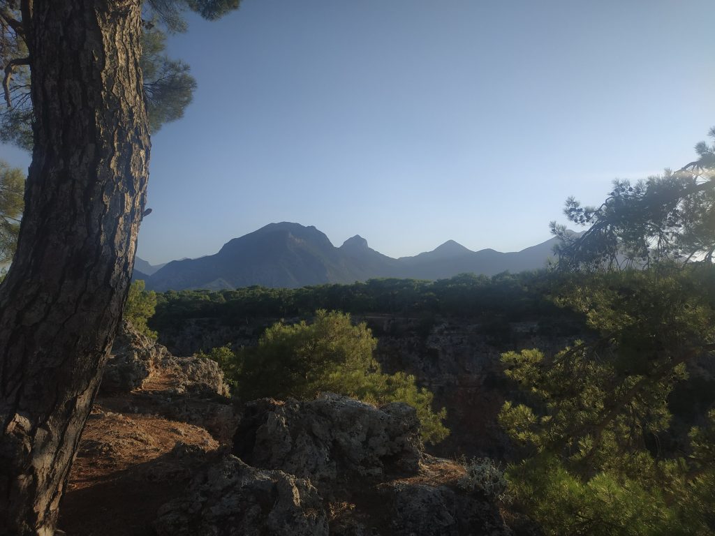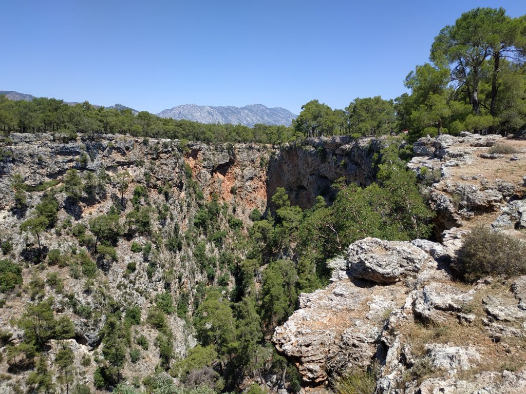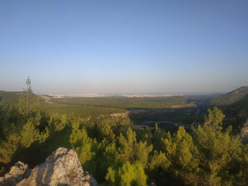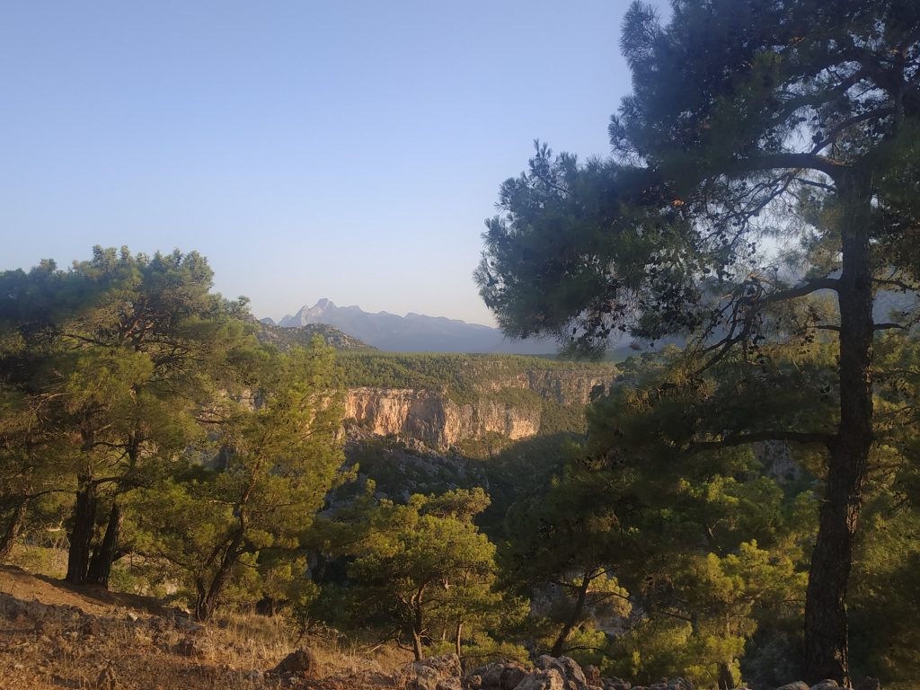 Ci dessous, vous voyez Antalya tout au fond dans son halo de pollution, depuis le bout de la piste qui longe le canyon et en rejoint un autre.