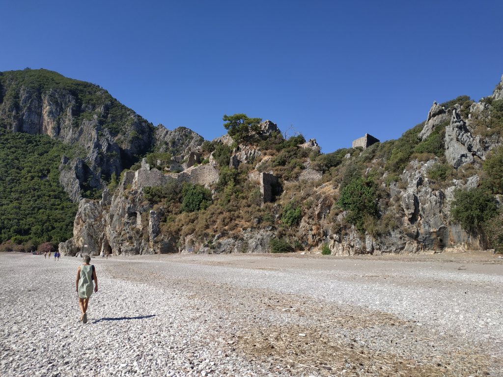 Ce matin on se rend au site archéologique d’Olympos, c’est de l’autre côté de la plage, au sud.