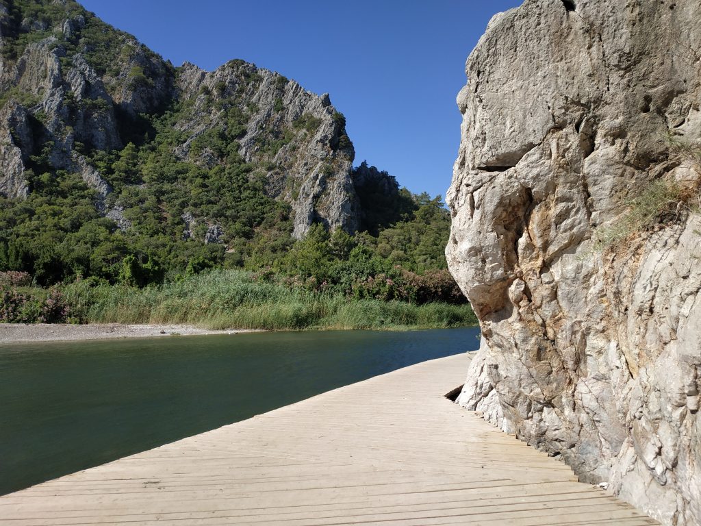 Pour entrer dans le site depuis la plage, ce ponton contourne la montagne et nous emmène au coeur du site.