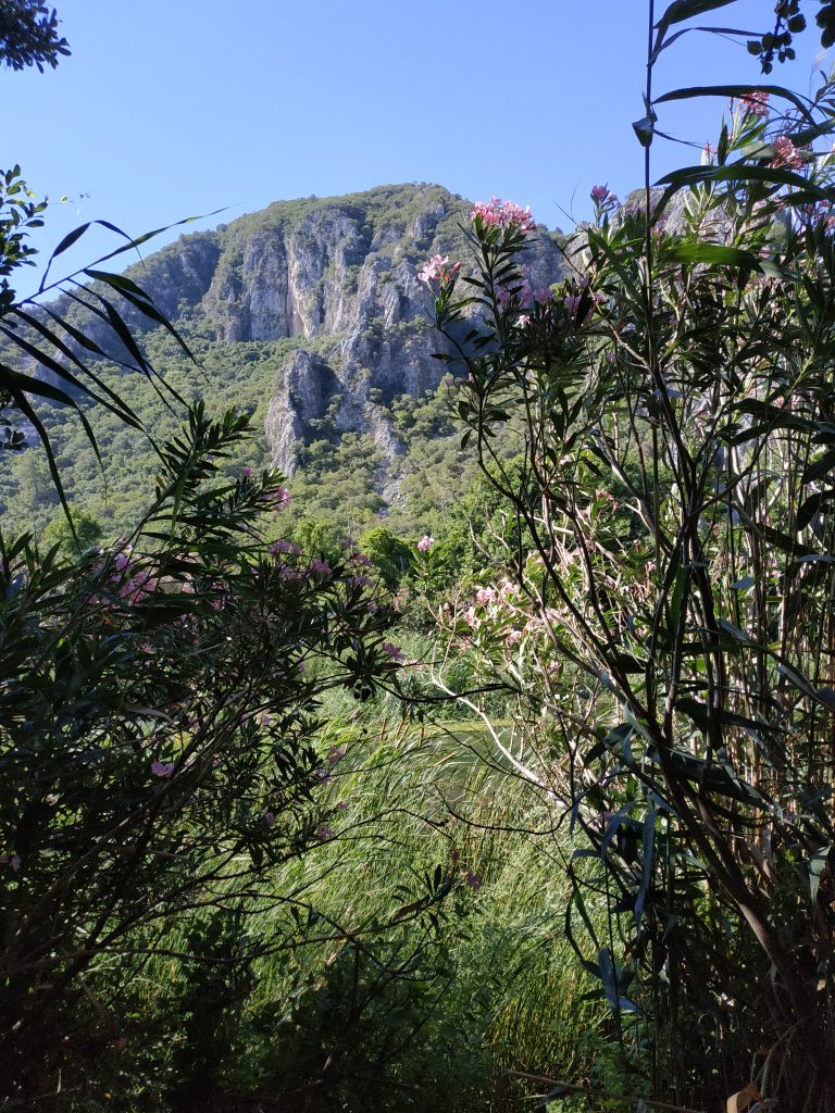 Derrière ce rideau de lauriers roses, coule une rivière d’eau fraîche. Elle est alimentée par plusieurs sources, dont celles des bains antiques.