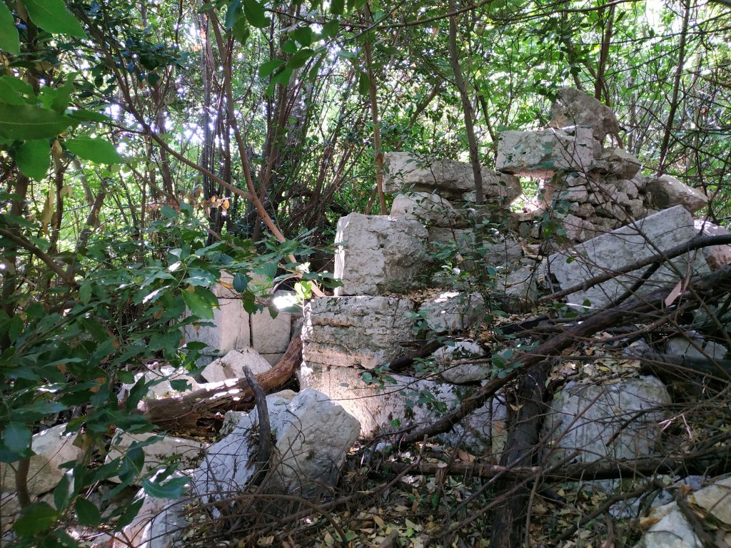 Trouve le (petit) théâtre qui est à peine reconnaissable, c’est un chaos de gros blocs. Reste la vague structure hémisphérique en gradins.