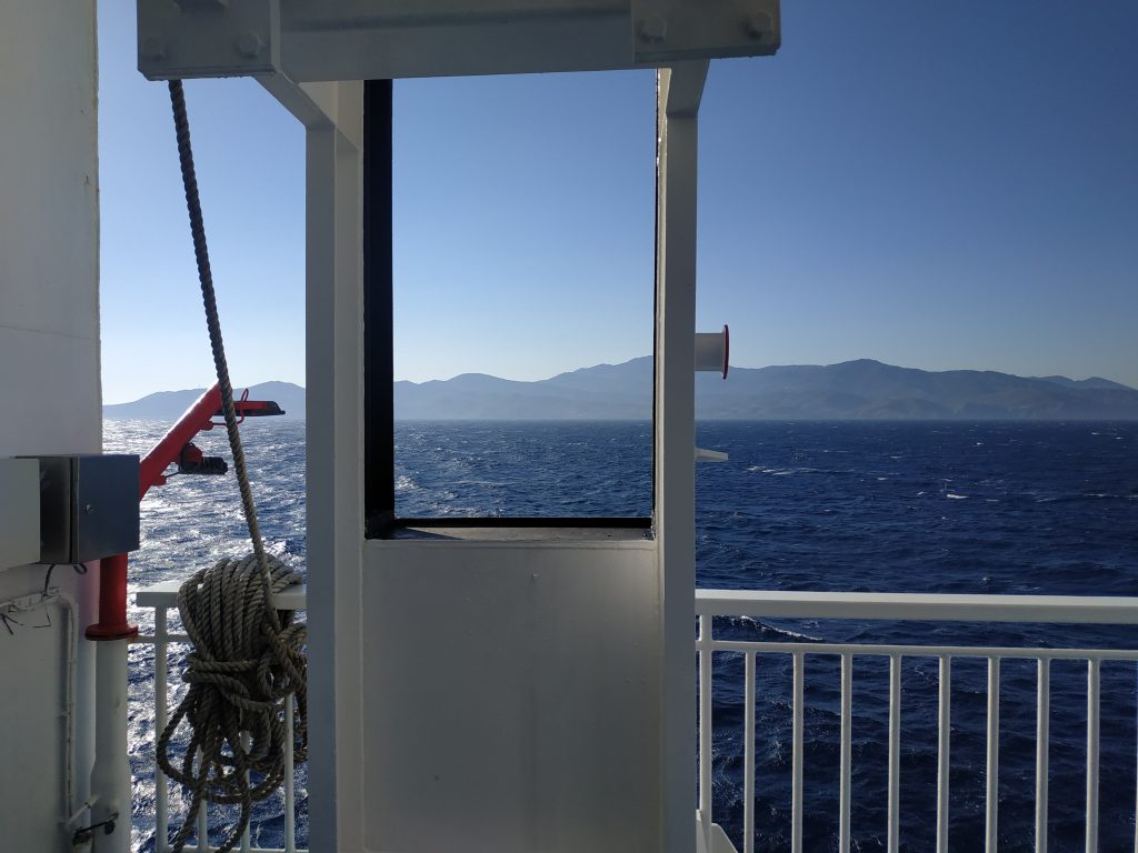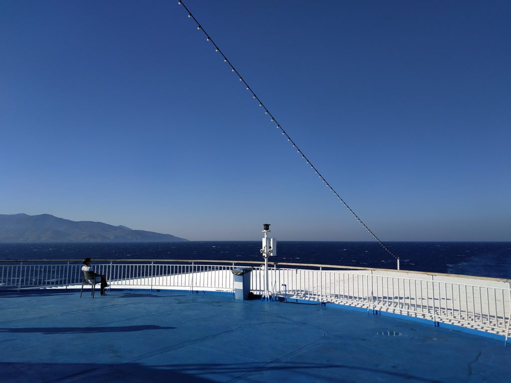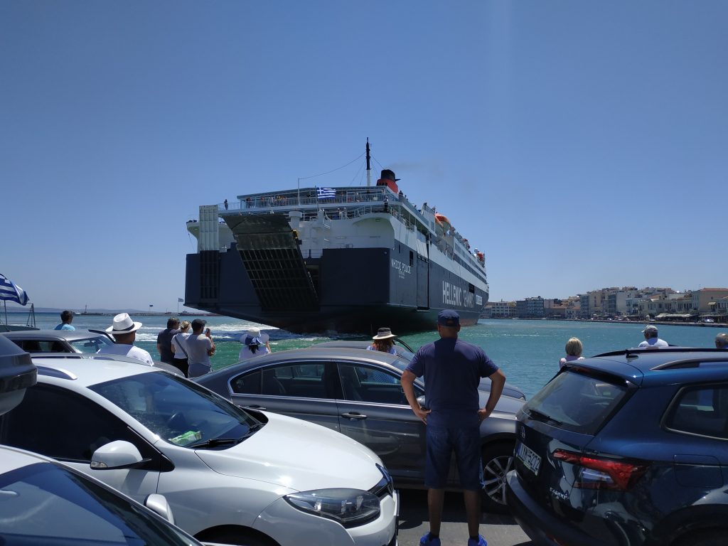 Le Nissos Rodos arrive, tout s’agite, chaque chose et personne trouve sa nouvelle place. Tout va très vite. Une heure de retard mais personne je crois ne s’en préoccupe.
