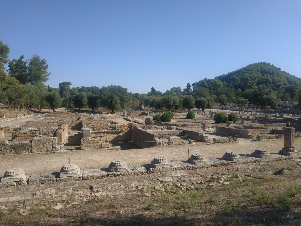 Le site d’Olympia ne comporte pas d’habitations car il était seulement un lieu de cultes (temples à Zeus et à Héra) et de rituels (bains, luttes et autres sports).