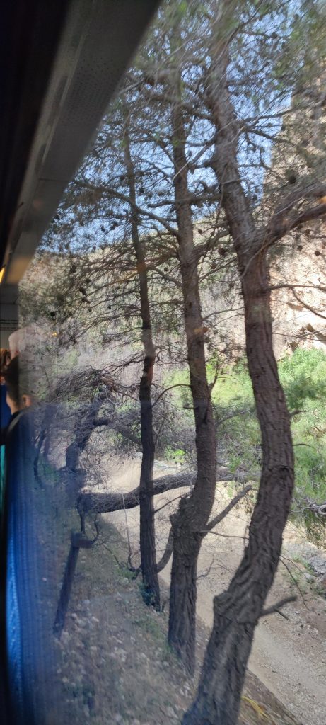 Ce matin on se dirige vers Diakopto, 10 kms en direction de Patras. On va prendre le train à crémaillère qui remonte les gorges de Vouraikos et nous amène au coeur du parc national du même nom.