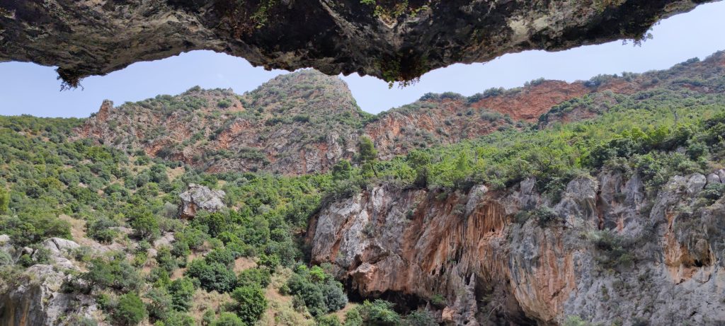 Après une petite heure de train, la petite gare de Zachlorou sera notre arrêt, nous avons fait le choix de descendre ici pour grimper à pied au monastère de Méga Spileon, indiqué à 1h30 par ce sentier. Photo (ci-dessous) prise à environ trente minutes du départ.