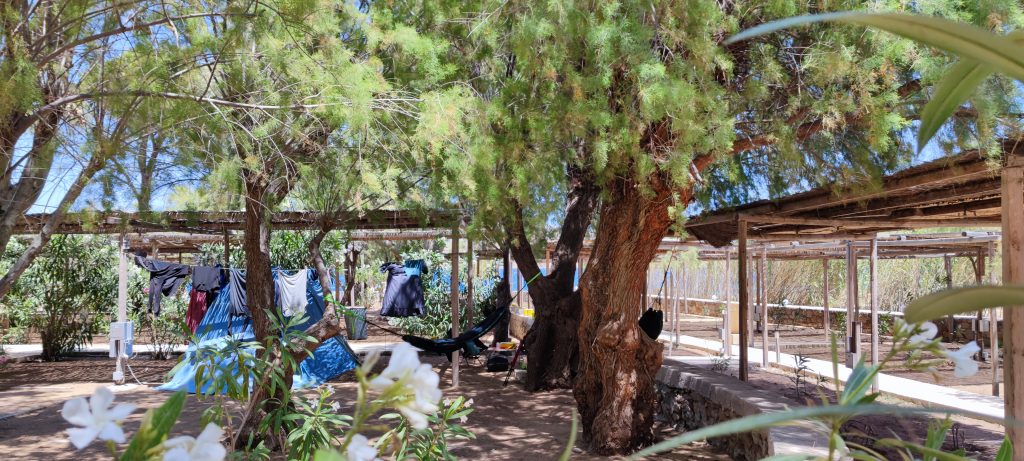 Entourés de tamaris et d’eucalyptus, on a réussi à accrocher nos 2 hamacs.
