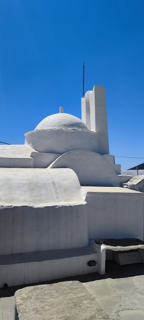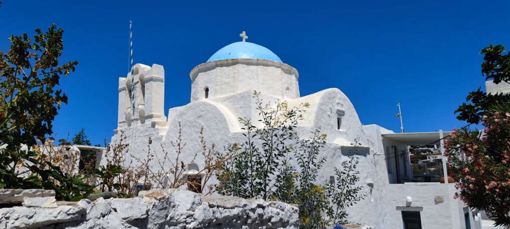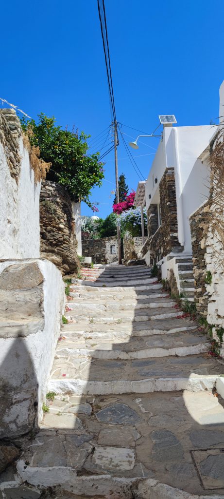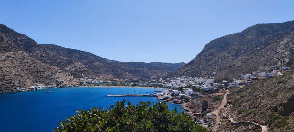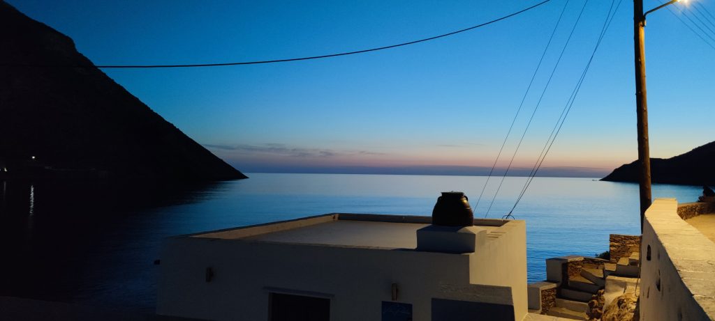Sifnos est une île différente de Serifos (jusqu’ici tout va bien), elle n’est qu’à une heure de celle-ci en ferry, un peu plus au sud. Le port désservi par les compagnies maritimes est Kamares, là où nous sommes installés au camping Makis.