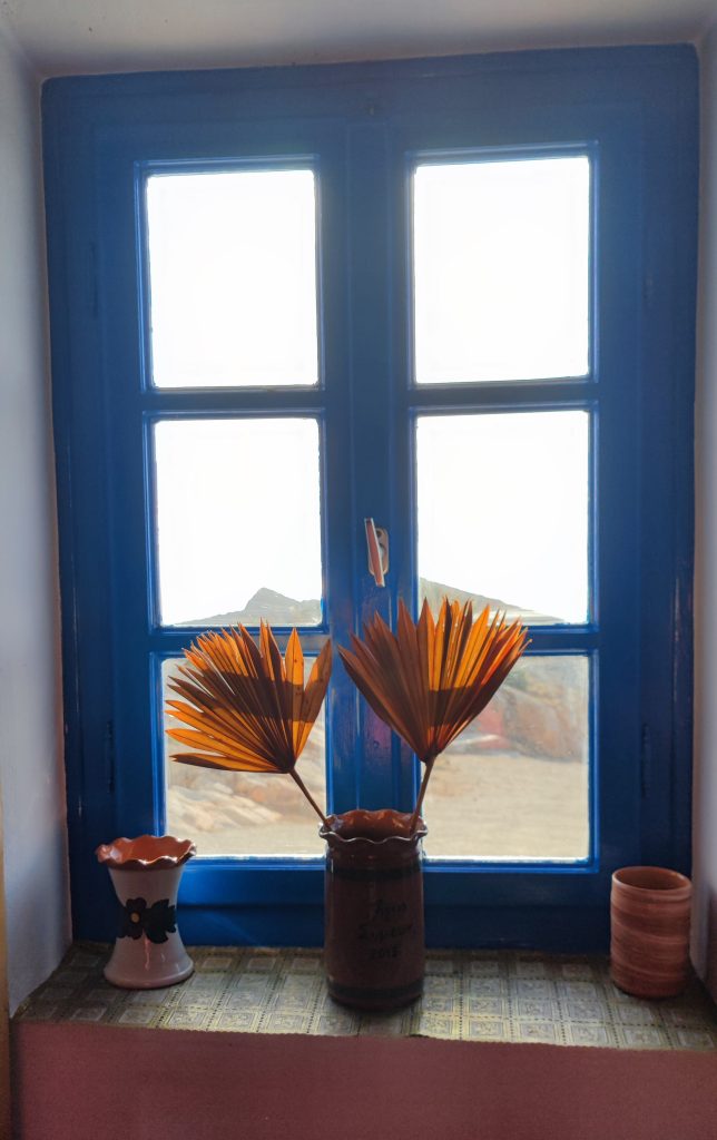 Salut à vous ! On est monté ce soir au monastère de Agios Siméon, on n’osait plus se servir de la moto tellement elle péclotait. Il fallait rompre la glace, se rapprocher d’elle à nouveau, calmer nos réticences, ravaler nos jurons guzziphobes, tout ça.