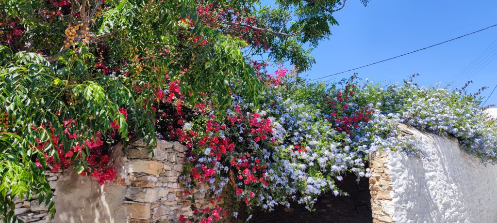 Toujours étonnante cette sécheresse apparente un peu partout, et l’exubérance des Bougainvillées, vignes et autres rampantes fleuries dans les villages.