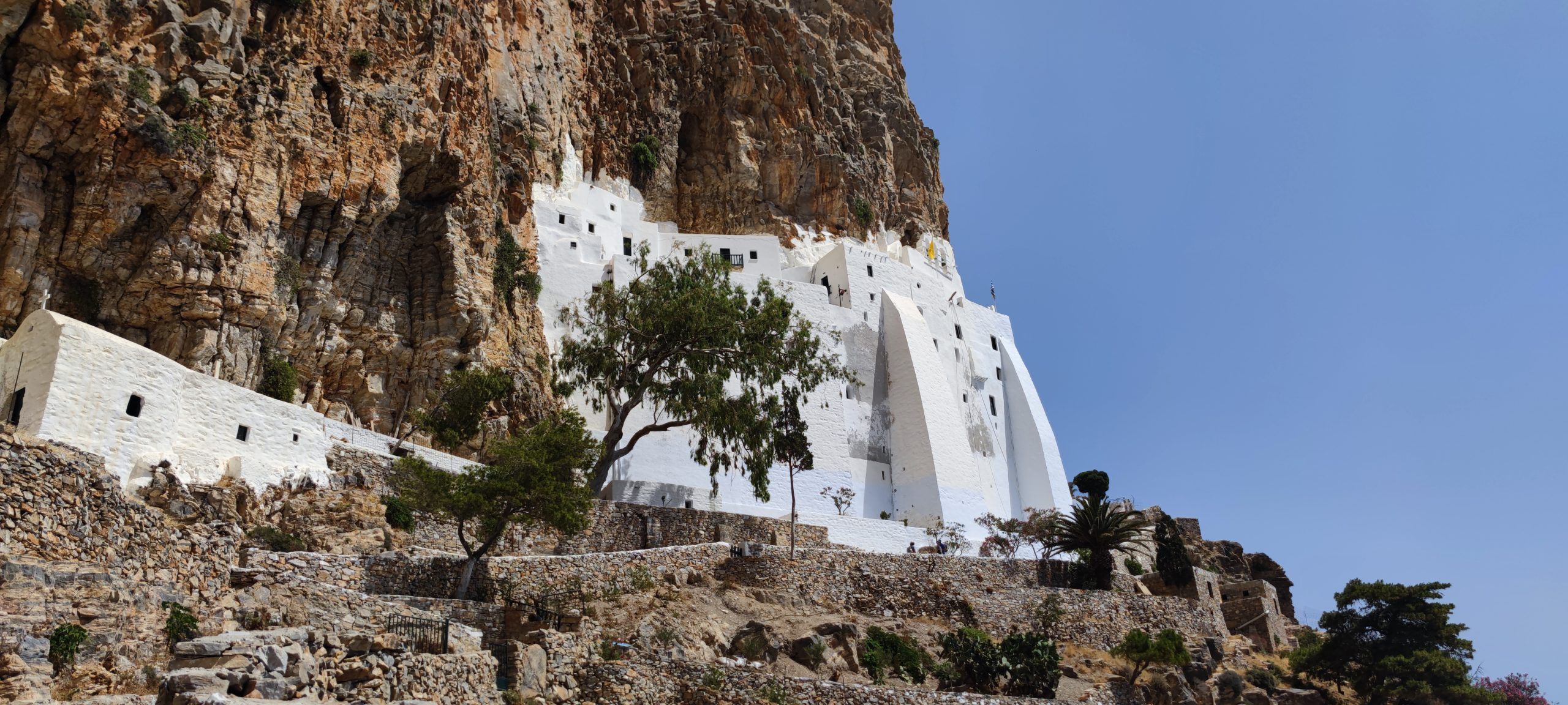 Le monastère de Panagia Chozoviotissa, c’est cette tache blanche adossée à mi hauteur de cette montagne à 300 mètres au … Plus
