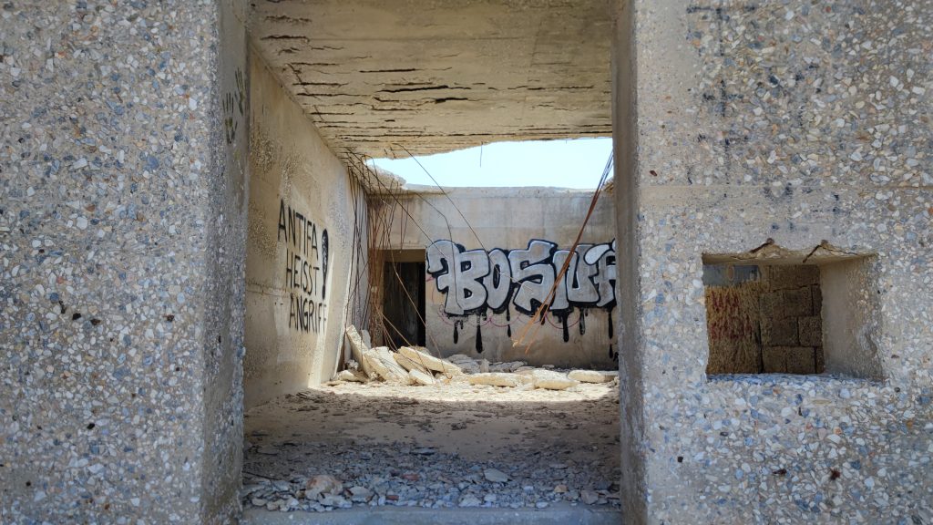 Quelle que soit l’histoire de ce projet, ses ruines ont été ré -appropriées par des graffeurs.