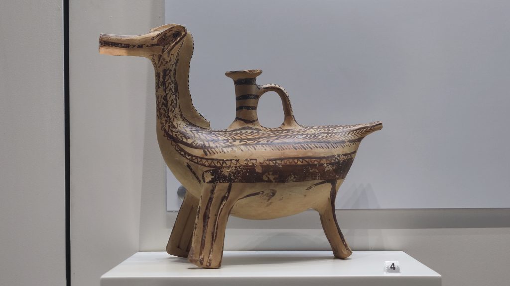 Carafe-Canard en terre cuite peinte, période romaine (1er à 4ème siècle après J.C)