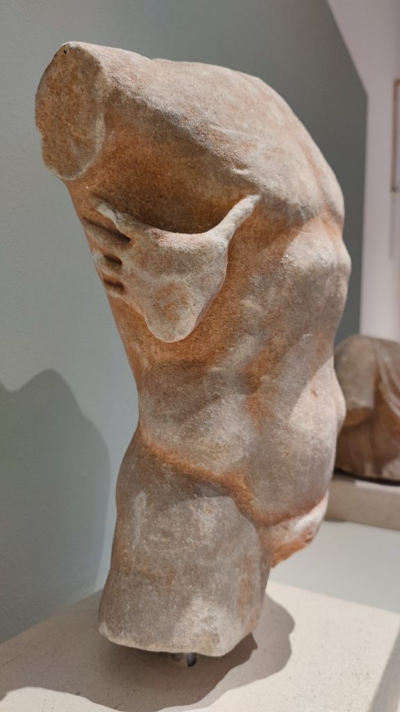 Torse et main, marbre, fait partie d’une série de 3 sculptures du 5-4 ème siècle avant J.C