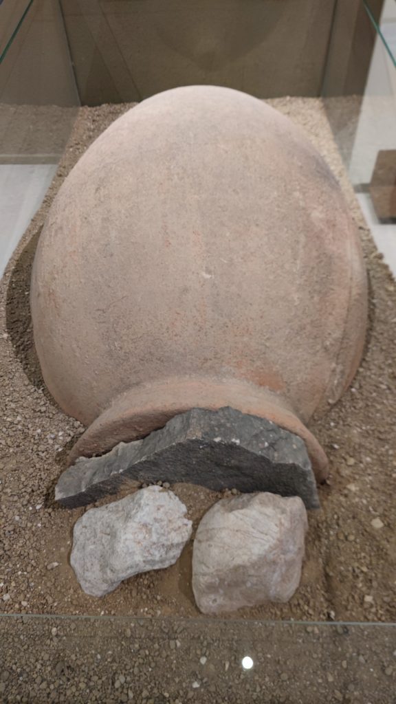 Autre style, d’une facture plus modeste, cette « amphore » ou « vase » sert de cercueil.