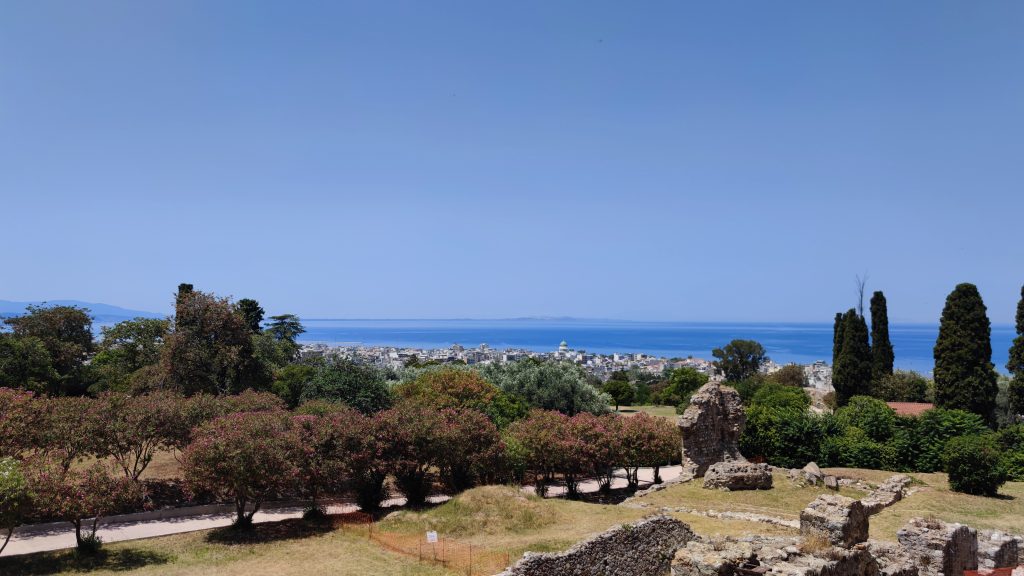 Patras. C’est de là que nous partirons demain soir pour rejoindre Venise par le ferry. C’est aussi une ville d’histoire où ont été découvertes de nombreuses ruines, objets, armes, bijoux, sépultures, mosaïques, et autres traces diverses sur plusieurs sites relevant de différentes époques, couvrant… plus de 3 millénaires, rien que ça.