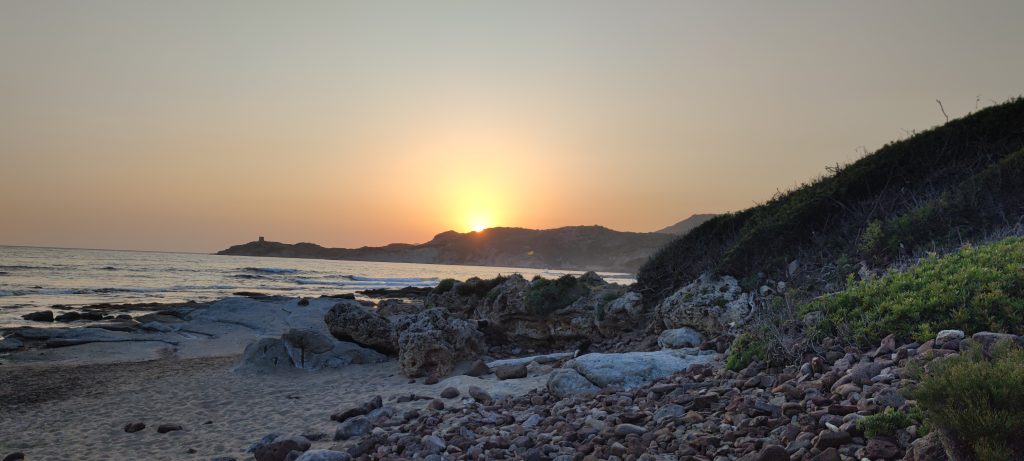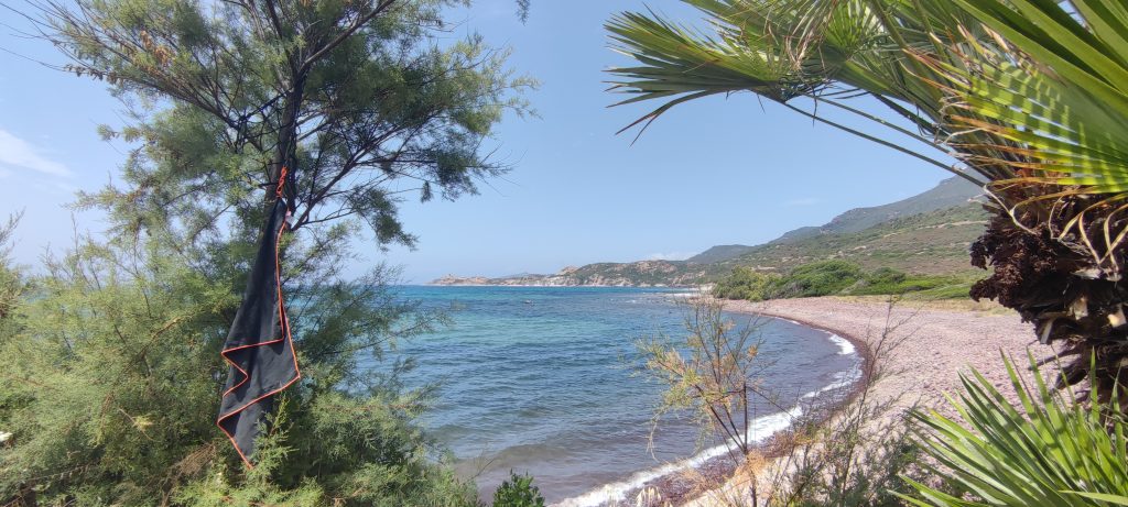 Et puis c’est Bosa, d’abord son camping, quelques kilomètres avant la petite ville, caché dans la végétation d’un épais maquis, juste en bord de mer. Sauvage on peut le dire. Confort spartiate mais accueil chaleureux. Pas d’emplacements millimétrés ou numérotés – à quoi bon ? – c’est calme et sans chichis ni prise de tête. On va rester quelques jours je pense. Le Guide du Routard s’est apparemment empâté plus vite que nous : ils ne goûtent pas trop le charme un peu rustre des lieux, le reléguant à la catégorie « Plutôt en dépannage… ». On pourrait dire, nous, qu’on a pas trouvé mieux !