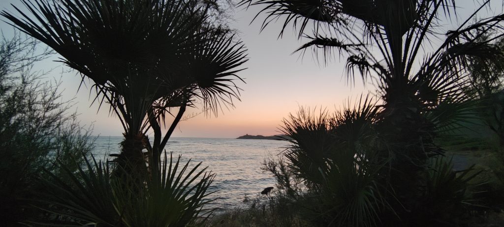Les galets de la plage sous nos pieds sont de la couleur des pierres dont sont faites les villes sur cette côte, un terra cotta un peu roux.