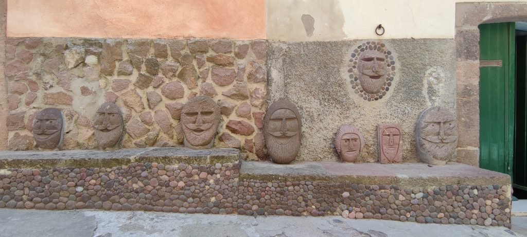 Au moment de redescendre par les petites rues, nous tombons en arrêt devant une façade de maison aux multiples portraits scellés. La porte s’ouvre et son propriétaire, un septuagénaire à l’oeil pétillant, cheveux longs et moustache blanches, en tenue de cycliste, arborant un maillot du Giro, son vélo de course blanc à la main, nous entreprend : c’est moi qui les ai faits dit-il, plus amusé que fier.