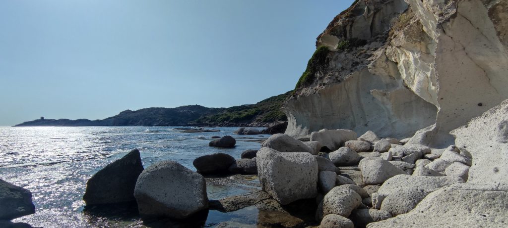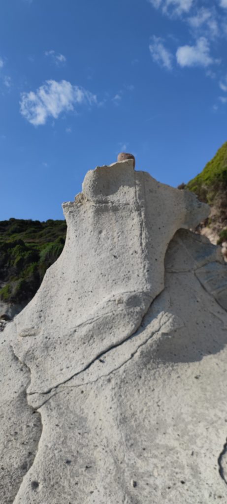 Ces falaises blanches, on les voit depuis notre arrivée ici. On se demandait de quoi elles pouvaient être faites pour être si lumineuses ? Le mieux était d’y aller voir. Une fin d’après midi où le soleil était plus doux, on s’est équipé de nos chaussures de marche et on s’est mis en route.