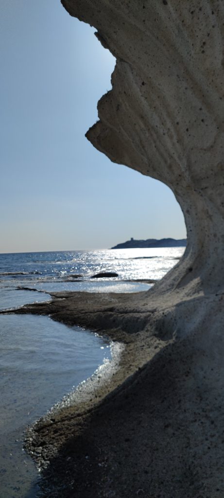 Cette tour là bas, ne nous sera pas accessible par ce chemin. Pas grave, la balade valait pour la beauté de ces rochers. On les imaginait plus tendres, comme une craie, leur dureté nous a surpris.