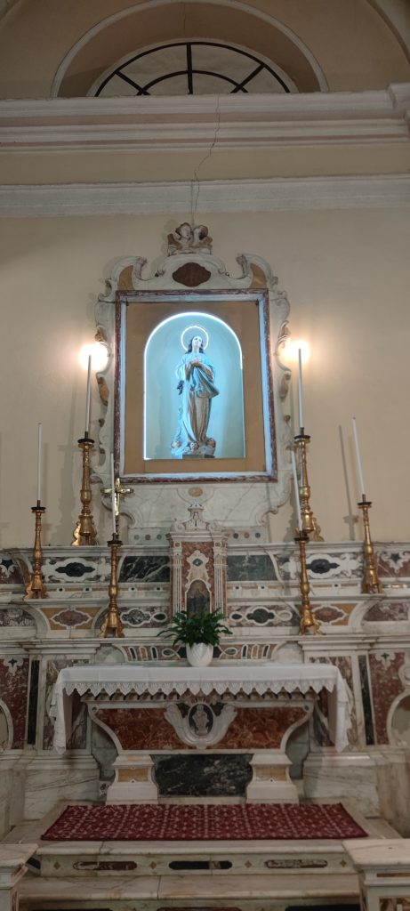 Ici dans une église voisine, l’usage d’une couronne de lampes à LED blanches autour de Marie mais aussi de son auréole, surprend. La friction des codes chrétiens de la dévotion rencontrant ceux de la publicité bon marché des produits discount : voilà qui a de quoi exciter l’intérêt des amateurs d’art contemporain.