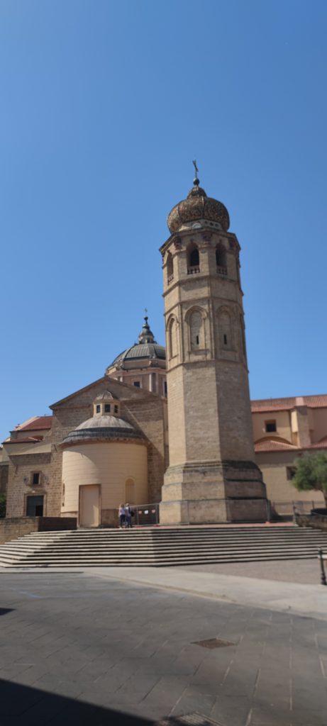 Oristano était la capitale du judicat d’Arborée (à peu de choses près l’actuelle province d’Oristano) jusqu’en 1410, après l’abandon de la première capitale, Tharros ( un fameux site archéologique que l’on visitera demain). En 1637, pendant la guerre de Trente Ans, la flotte française commandée par la comte d’Harcourt débarquait et prenait possession de la ville en détruisant ses fortifications. Voilà pourquoi on en a effectivement pas vues, sauf deux tours rescapées…