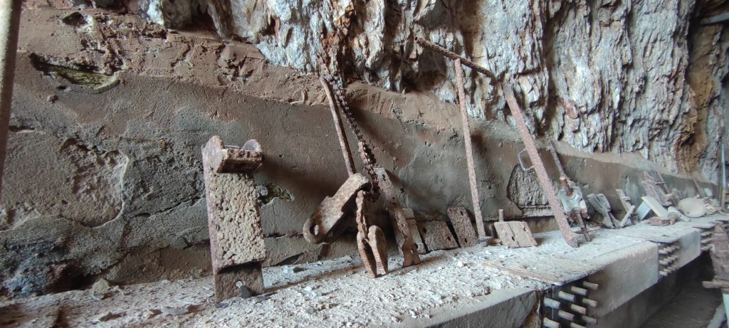 Dans ces galeries sont exposés des outils utilisés par les mineurs et leurs familles, car les hommes, mais aussi les femmes et les enfants y étaient employés dans des conditions dangereuses et difficiles.