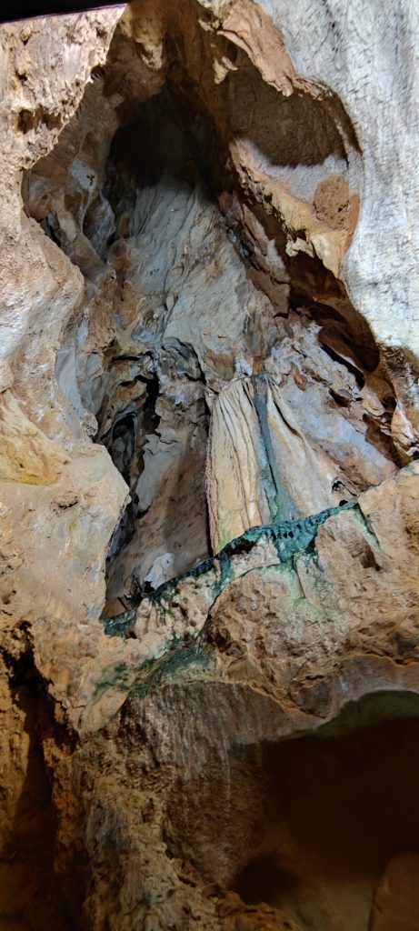 Et là, une petite grotte latérale à la galerie, avec ses stalagmites et stalactites, mise à jour fortuitement lors du forage de la mine, rappelant à chacun, les mystères et secrets de la montagne, qui creuse, elle, où bon lui semble.