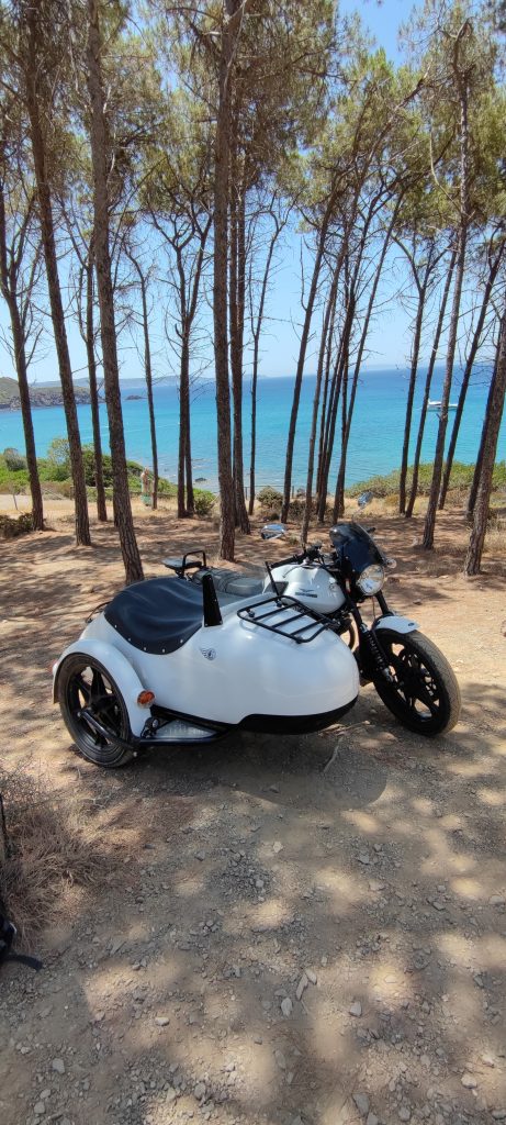 Et on retrouve un peu plus tard notre destrier, garé à l’ombre des pins.