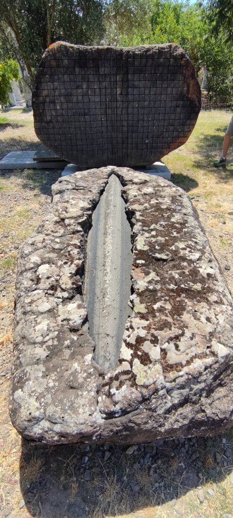 Aujourd’hui nous avons quitté Chia plus tôt qu’à notre habitude. C’est que nous sommes allés voir le musée à ciel ouvert de Pinuccio Sciola, sculpteur Sarde né en 1942 à San Sperate. Nous avions été très intrigués par ce que nous avions lu sur lui…