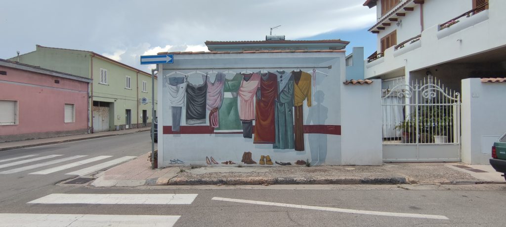 Et puis c’est San Sperate, littéralement Saint Espoir. La ville exhibe fièrement ses multiples murales ou peintures murales. On trouve aussi bien des scènes de vie campagnardes que des compositions plus contemporaines ou des portraits. Certaines sont l’œuvre de Pinuccio Sciola, dans le premier temps de son travail d’artiste, après sa formation académique internationale, dans les années 70. Il a invité ici d’autres peintres, travaillé aussi avec des enfants de sa ville pour réaliser des fresques à plusieurs mains.