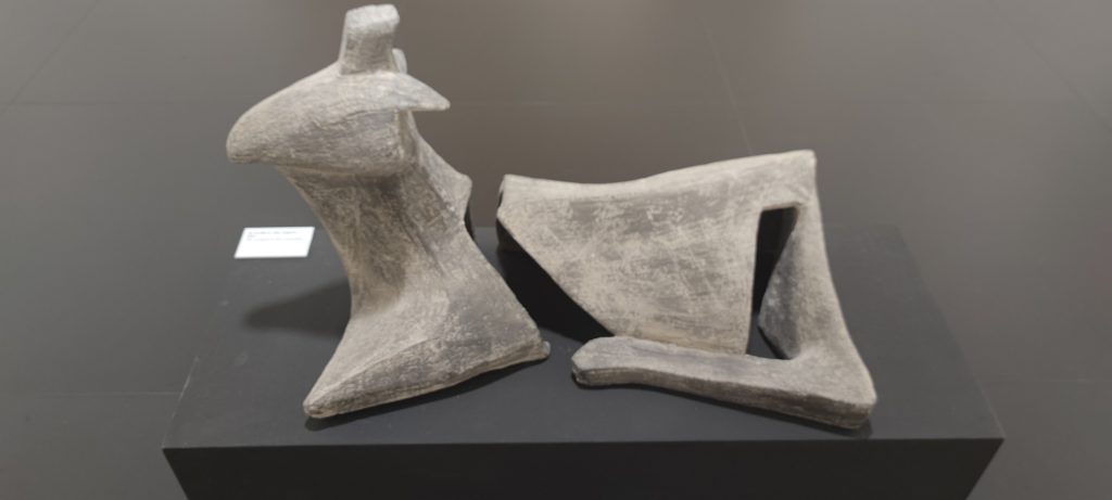 Énigmatique sculpture en deux pièces-pierres qui rappelle dans ses traits, ceux stylisés, de la statuaire Nuraghe.
