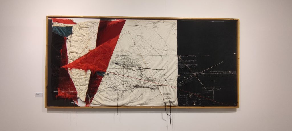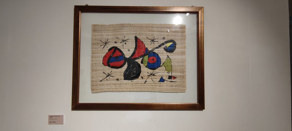 Mais l’exposition ne s’arrête pas là, elle se poursuit en ville dans la Casa Museo Cannas. Ici ce sont des oeuvres de Miro qui dialoguent avec celles de Maria Lai.