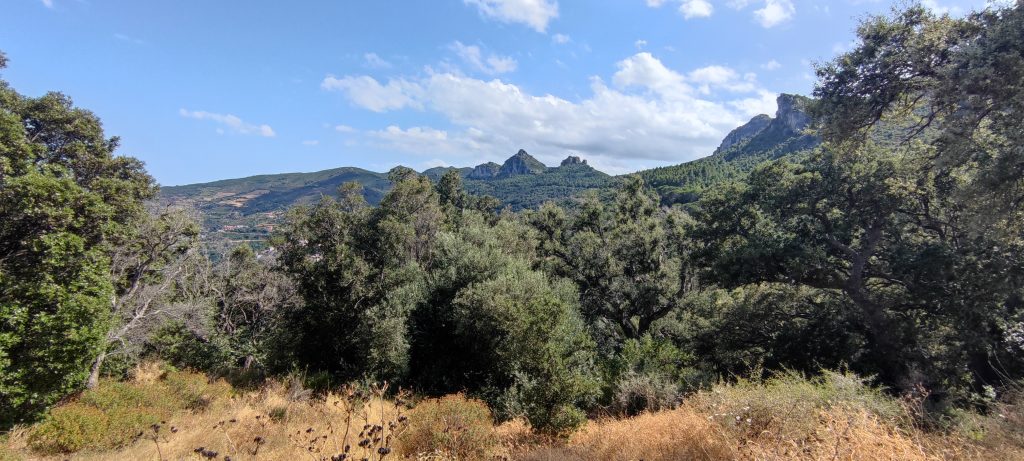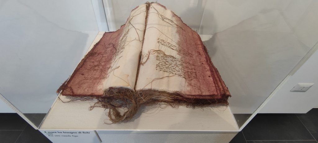 Vue vers les montagnes depuis le terrain dit musée à ciel ouvert qui entoure l’Ulassai Art Station. L’exposition actuelle que nous avons visité met en correspondances des œuvres de Maria Lai et de Miro, dont les quelques photos qui suivent témoignent.